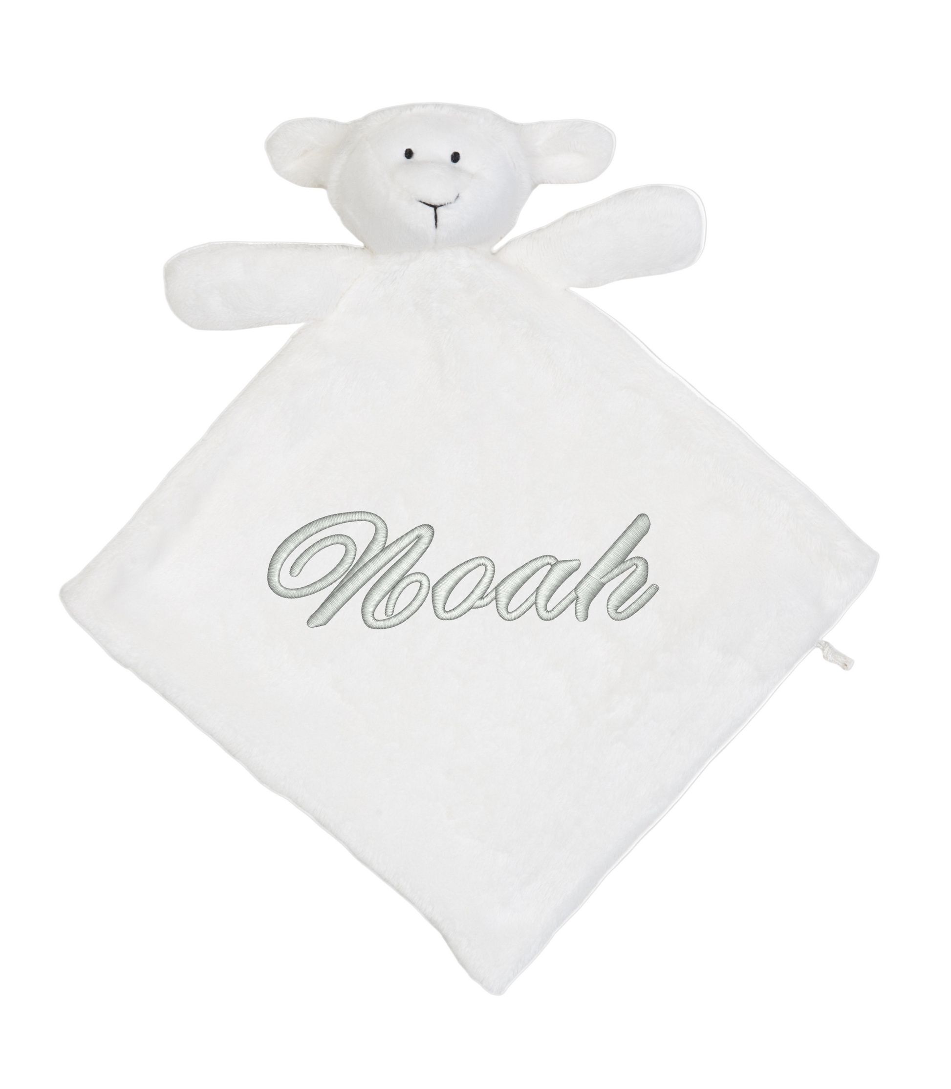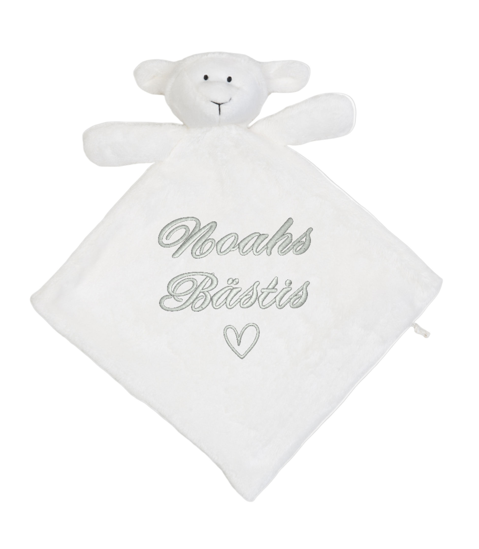 Denna gulliga snuttefilt i form av ett lamm är tillverkad i len plysch. Filten broderas med barnets namn. En personlig detalj som gör den extra speciell och perfekt som present till julklapp, dop, babyshower eller nyfödd.